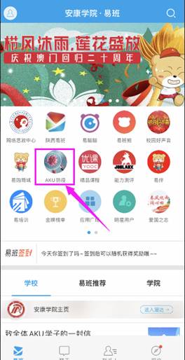 2.也可登录易班APP,在首页点击“AKU防疫”图标进入活动页面