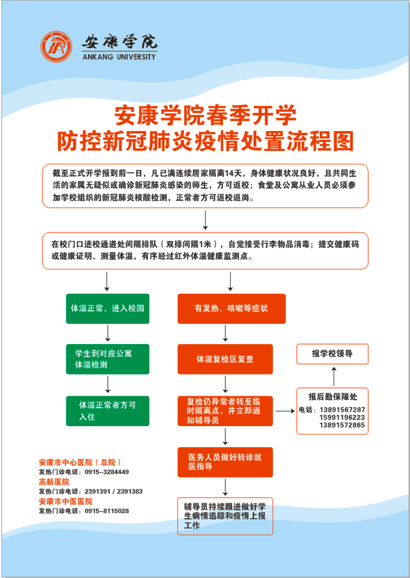 2.做好发热学生及其舍友登记、复查、流行病调查、隔离等后续工作。(责任部门:后勤处)